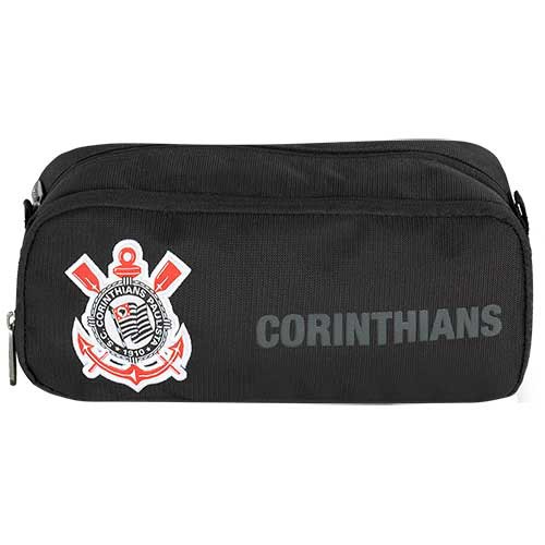 Necessaire Dupla Corinthians produzida em poliéster resistente, possui compartimento principal amplo e um secundário para melhor organizar os objetos. Fechamento em zíper com puxador personalizado.